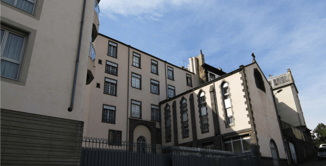 Située au cœur du centre historique de Clermont-Ferrand, La Sainte Famille constitue un ensemble de bâtiments composé de trois hôtels particuliers mitoyens datant du XVIIème et XVIIIème siècle, d’une Chapelle du XIXème, ainsi que d’une extension de la fin du XXème siècle construits sur les anciens remparts de la ville.